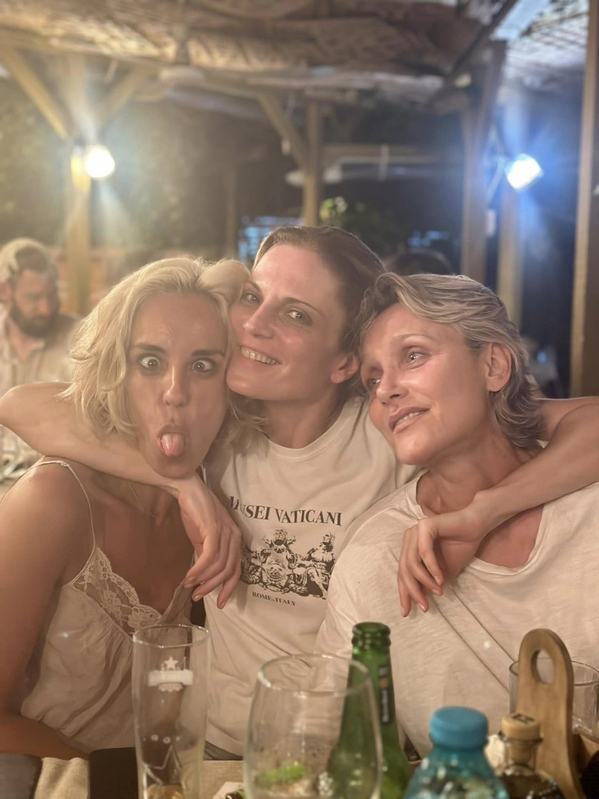 Радина Кърджилова, Теодора Духовникова и Койна Русева пият бира и се забавляват в заведение в Приморско след края на първия снимачен ден