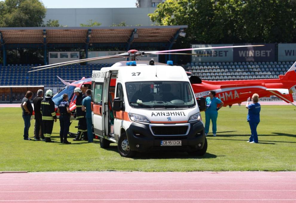 Медицински хеликоптер кацна на градския стадион в Русе.