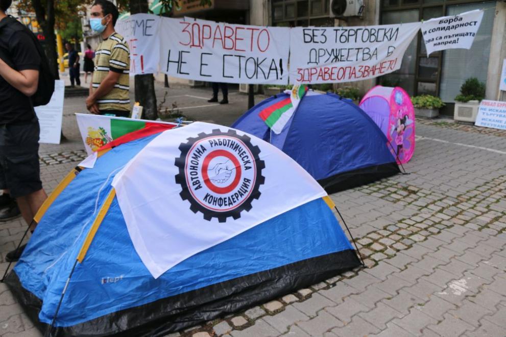 Медицински сестри разпънаха палатки пред МЗ, Ангелов разговаря с тях
