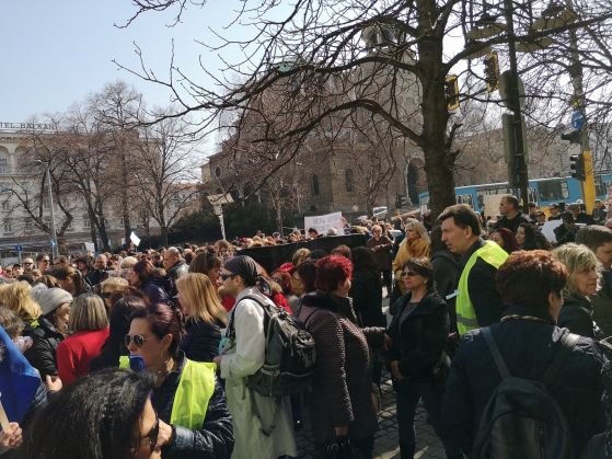 Демонстрантите показаха, че се притесняват, че отпуснатите за нарастване на заплатите 30 млн. лв. в действителност няма да стигнат до тях.