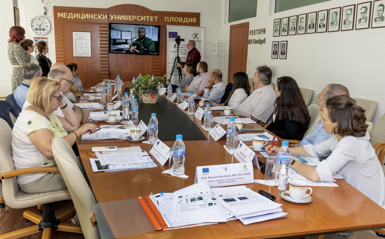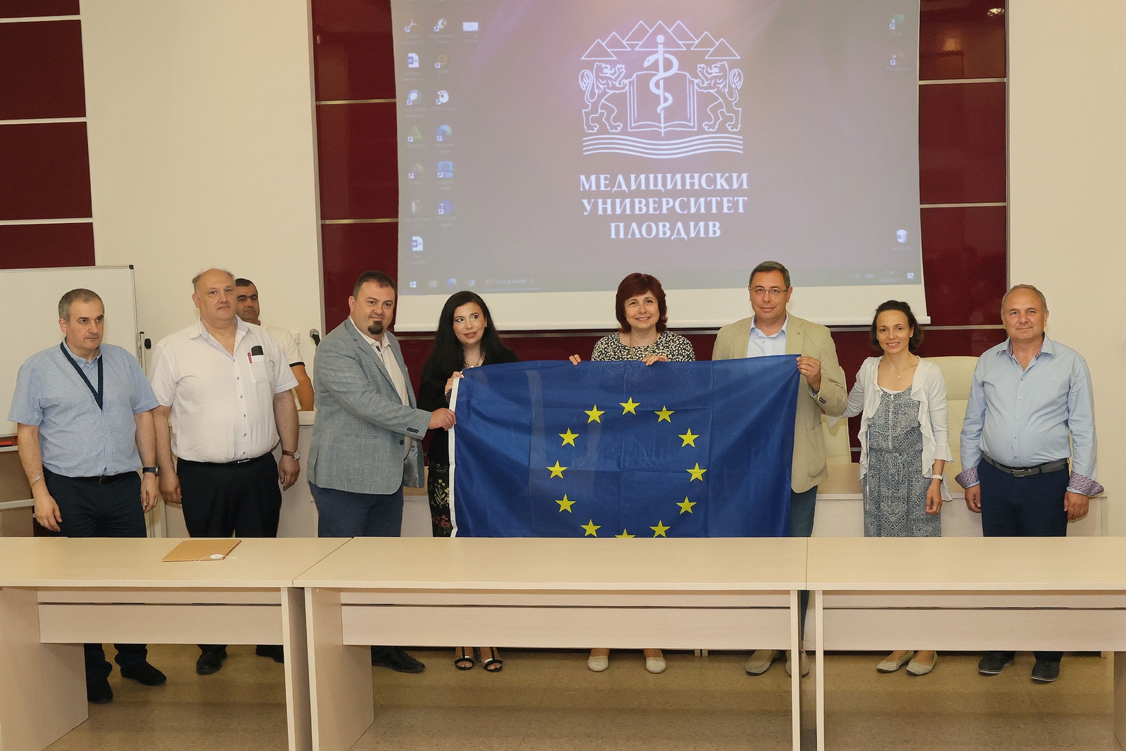 Медицинският университет – Пловдив посрещна делегация от седем представители на Европейската комисия и от Изпълнителната организация по Оперативна стратегия „ Наука и обучение за образован напредък “, ръководена от проф. дхн Георги Вайсилов – Изпълнителен шеф.