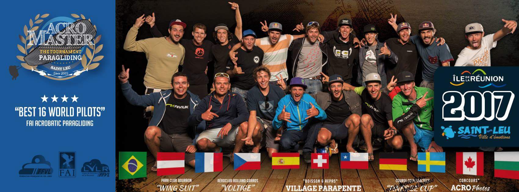 Между 25 и 29 октомври 2017, шестнайсет от топ акро-параглайдинг водачите в света (според ранг-листата на FAI) ще се съревновават във въздуха над красивия остров Ла Реюнион (La Réunion). Те ще покажат най-хубавото във въздушната акробатика, в борба за купата „ Акро-мастър водач на 2017 “. Този формат се организира за първи път на вулканичния остров, след голям брой международни купи по cross country – поради съвършените условия за хвърчене, които дава климатът и островът. Акро-състезание през 2017, което се състои от два стадия: Пилотите ще изхвърчат от две избрани точки – на 700 и на 1600м. надморска височина, откъдето ще упражняват и ще вършат демонстрации. От събота 28.10, те ще бъдат спускани от хеликоптер над залива Св. Льо (St. Leu) – община в западната част на френския остров Ла Реюнион.