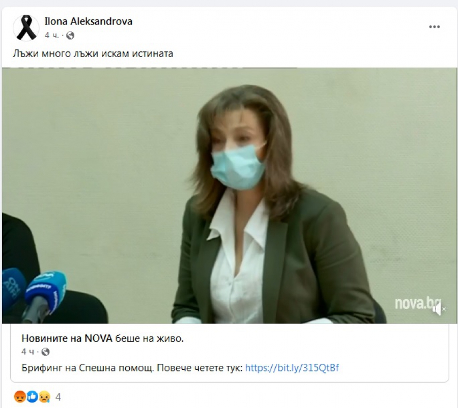 Междувременно брачната половинка на умрелия Илона Александрова показа във Facebook брифинга на Спешна помощ и написа: " Лъжи доста неистини желая истината "