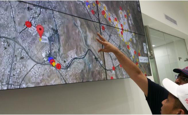 В Контролната зала на центъра 720 чиновници обработват сигналите и дават отговор на шест езици: арабски, британски, френски, фарси, малай и урду. Всеки от сигналите се предава към други департаменти в границите на 30 секунди. Представителят на центъра, Абдулрахман ал Салех удостоверява, че имат непрекъсната връзка с други държавни организации, които наблюдават за вероятни проблеми по сигурността. Общи патрули могат да се видят на всички места из Мека, наблюдаващи трафика, пътищата от и за града, както и лагерите, административните здания и джамиите. След този сезон на хадж, в случай че управляващите решат, че работата на този Център за интервенции по сигурността е сполучлива, то сходни центрове ще бъдат отворени из цялата страна.
