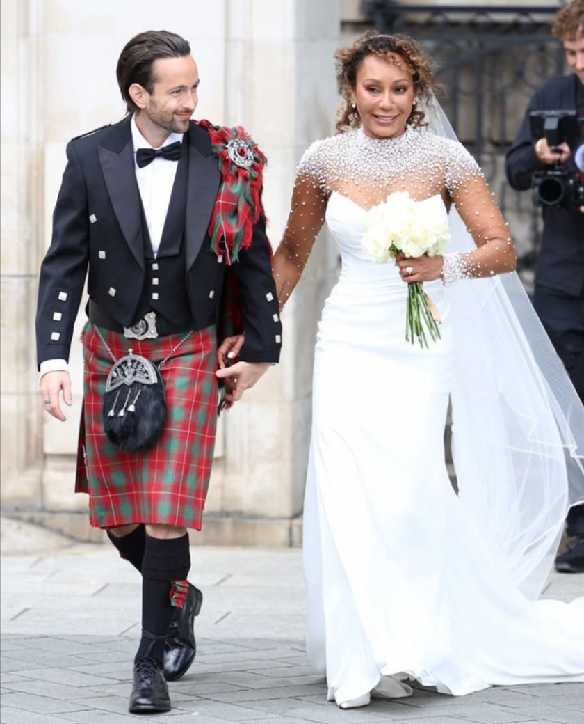 MailOnline показва, че непосредствен другар на младоженеца е имал достойнството да заведе Мел до олтара, замествайки починалия ѝ татко Мартин Браун. Макар събитието да притегли доста известни персони, неналичието на някои основни имена като Виктория Бекъм и Гери Халиуел се усещало. Източници на таблоида настояват, че Вики е била в чужбина по това време.