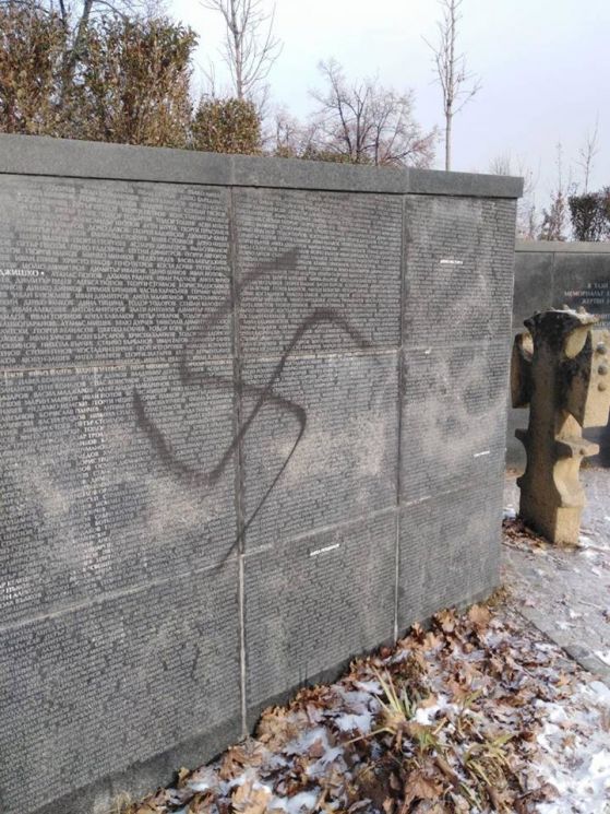 Върху имената на починалите е изписан и антисемитският надпис " Чифути убийци ".