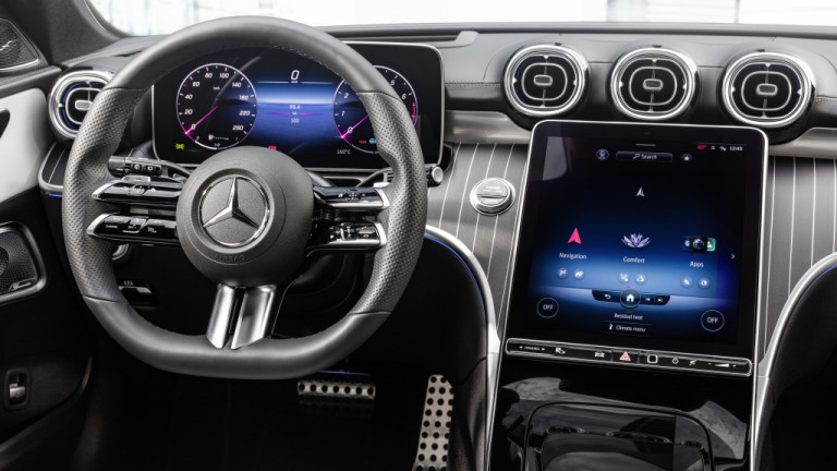 C-класата заимства последното потомство на инфотеймънт системата Mercedes-Benz User Experience (MBUX) от S-класата. Интериорът на автомобила e още по-дигитален и образован. Хардуерът и софтуерът са надградени: брилянтните изображения на LCD екраните улесняват ръководството на автомобила и функционалностите за комфорт.