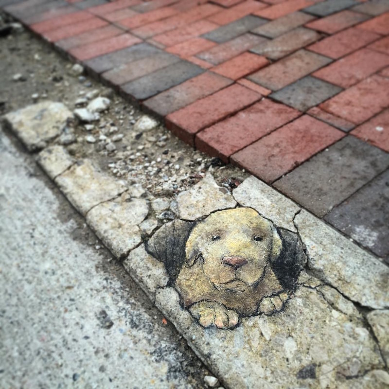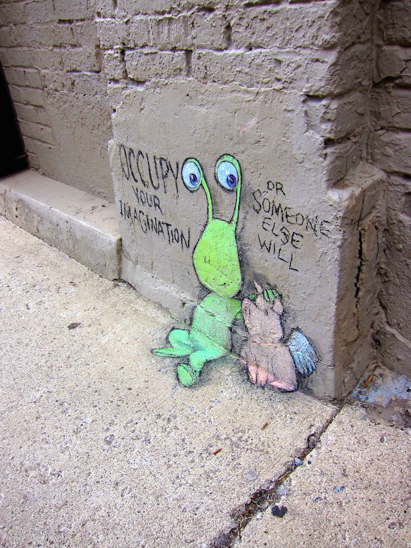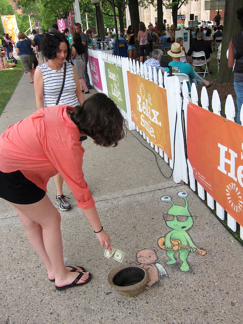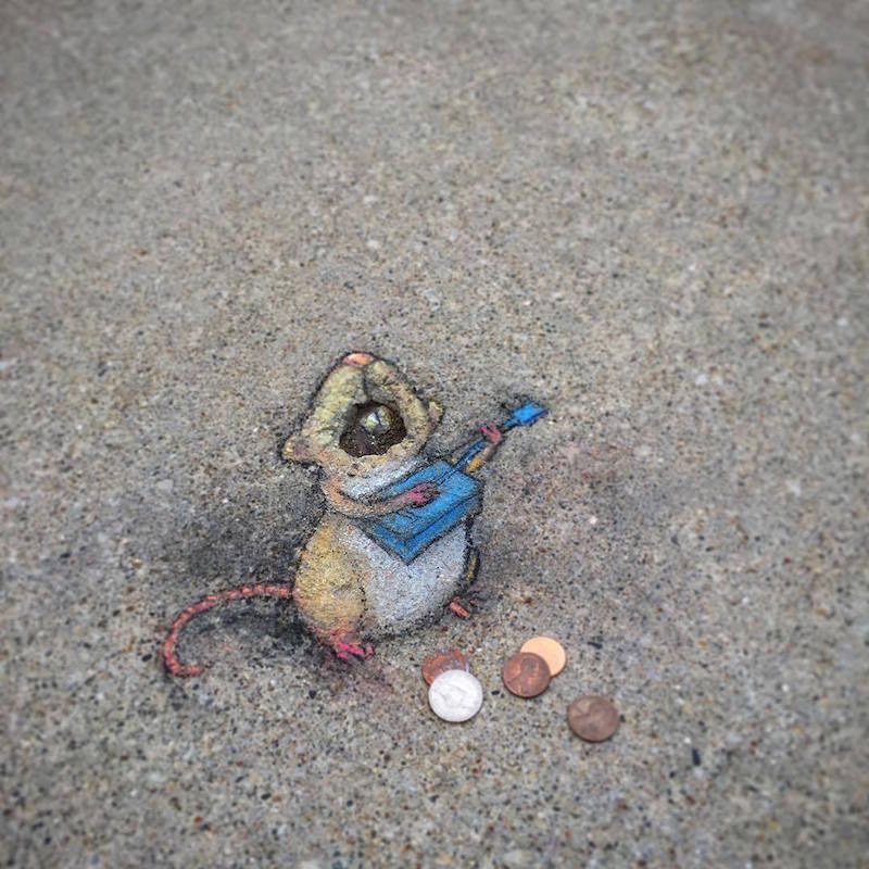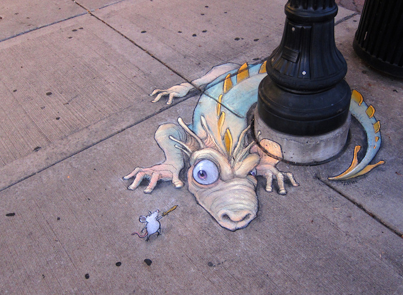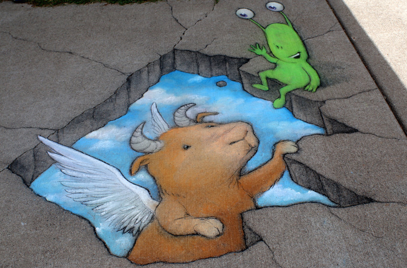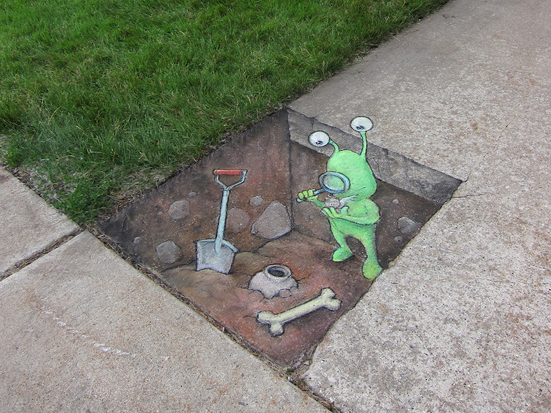 Мичиганкският илюстратор Дейвид Зин оживява улиците на Ан Арбър със своите триизмерни тебеширени рисунки от 1987г. насам и прави родното си място доста по-живописно и забавно. Сред героите му има риби, мишки, чудовища, летящо прасе на име Филомена и зелено извънземно на име Слъго, само че техният живот, за жалост продължава единствено до идващия дъжд.