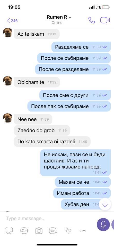 Последен диалог те са провели преди седмица, когато тя публично е напуснала и общия им бизнес. Причина за завършек на огромната им обич, съгласно Каканашева са редица несъответствия. Дизайнерката показа и скрийншот от последния им чат във вайбър.