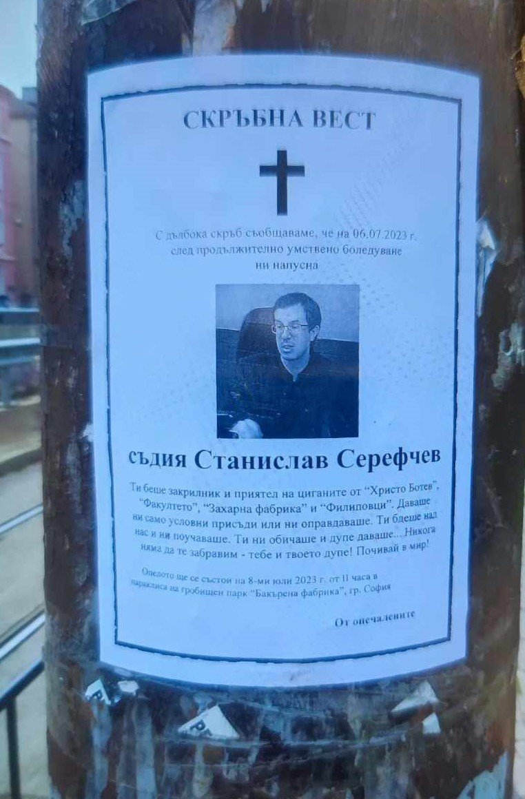 Eто хулигана, който лепи некролози на съдия Станислав Седефчев