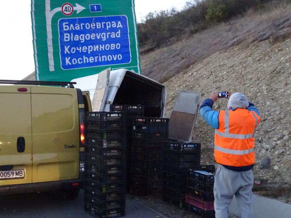 Микробус катастрофира и разпиля хляб на магистрала „Струма”