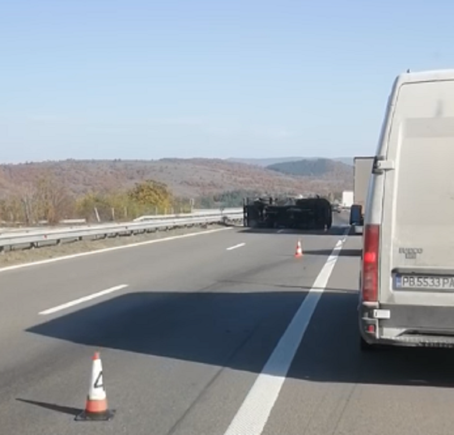 Микробус се е обърнал на 61-ия километър на автомагистрала " Тракия " в платното към Пловдив.