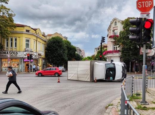 Микробус се е обърнал на централен варненски бул., предава Агенция " Булфото ".