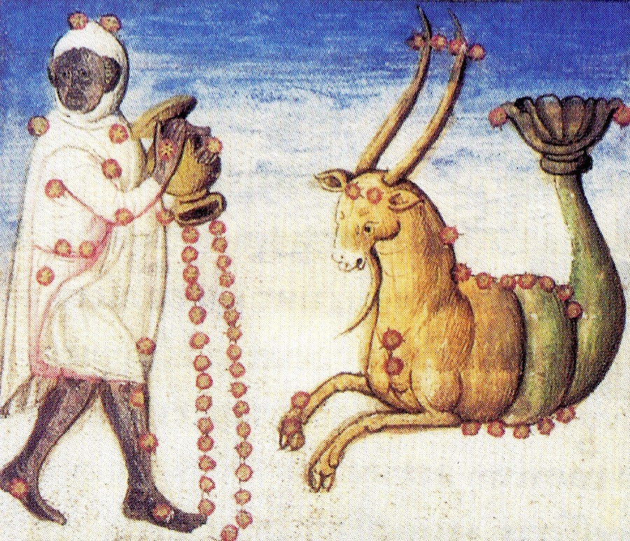(Mermen and Capricorn, book illustration in Miscellanea Astronomica, Rome, 15th century, Bibliotheca Apostolica)
