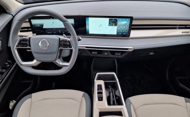 Иначе виждаме два 12,3-инчови екрана, като единственият физически бутон е този за спешните светлини. Екраните са с доста добра резолюция, само че са мудни като реакции. Воланът е комфортен, седалките също, само че пространството е това, което впечатлява. Домакините не се впуснаха в детайлно откриване на всички параметри, икономисаха от къде идва платформата, само че разумно е тя да е от Korando.