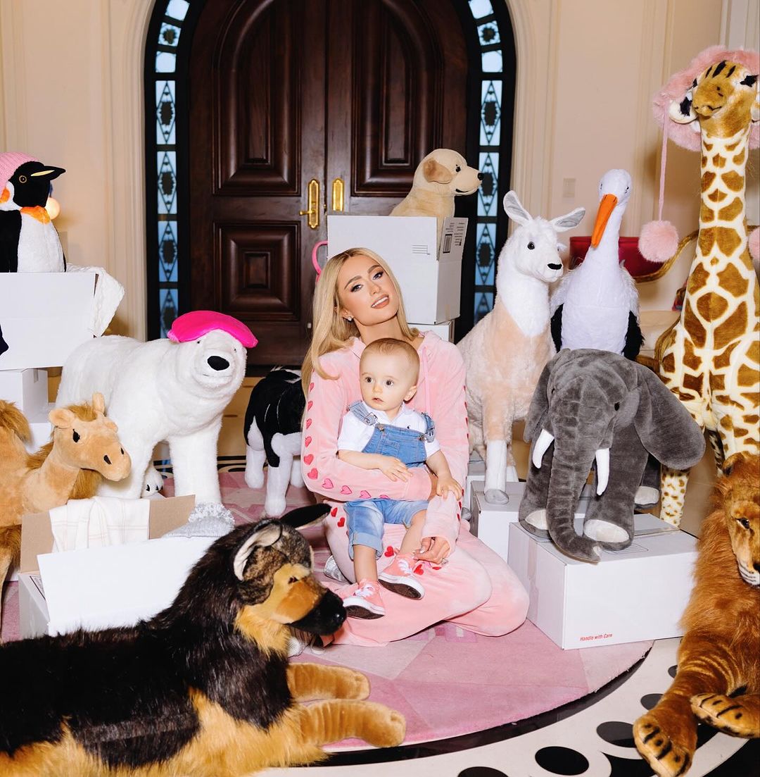 По случай първия рожден ден на сина си, Парис бе декорирала входа на дома с дузина големи плюшени играчки, които употребява като декор за специфична парти-фотосесия.