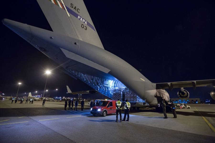Екипажът на самолета, с който дойдоха медицинските материали, се състои от 14 военни - шестима от Съединени американски щати, двама от Нидерландия и по един от Швеция, Финландия, Полша, Норвегия, Румъния и България.