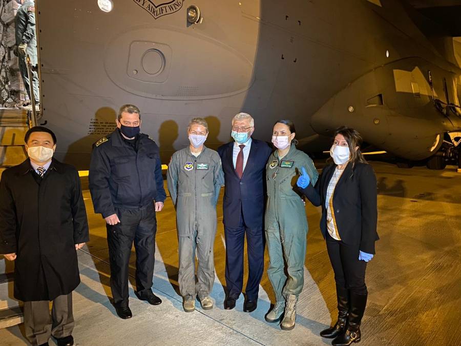 На борда на самолета, употребен от България в границите на партньорската Програма за стратегически въздушен транспорт на НАТО, има и подаяние от китайската страна с медицински и защитни материали с размер от 50,19 куб. м, което включва защитни маски, ръкавици и калцуни.
