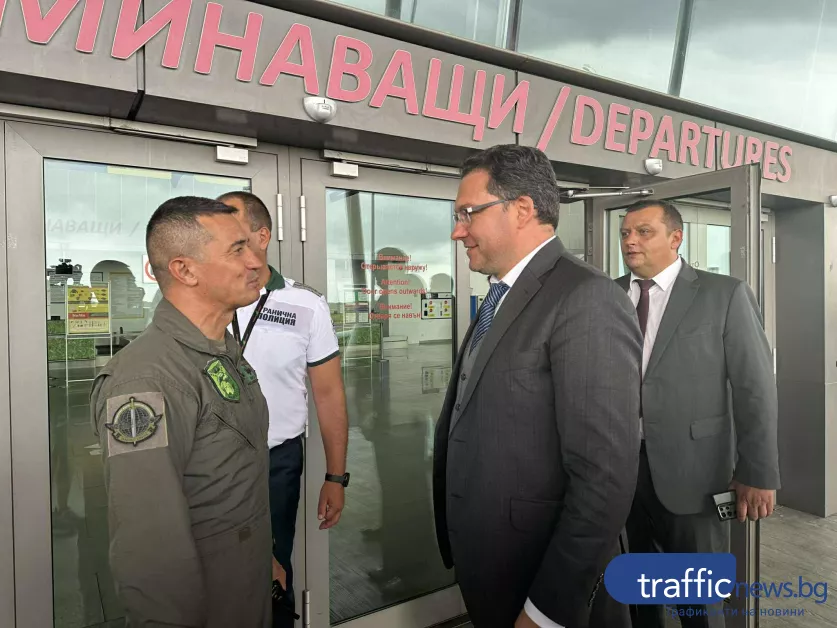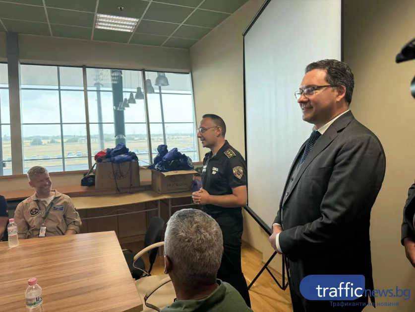 Министърът на Вътрешните работи Даниел Митов и шефът на Групово дело " Пожарна сигурност и отбрана на популацията " основен комисар Александър Джартов дадоха брифинг на Летище Пловдив с информация за пожарите в страната.