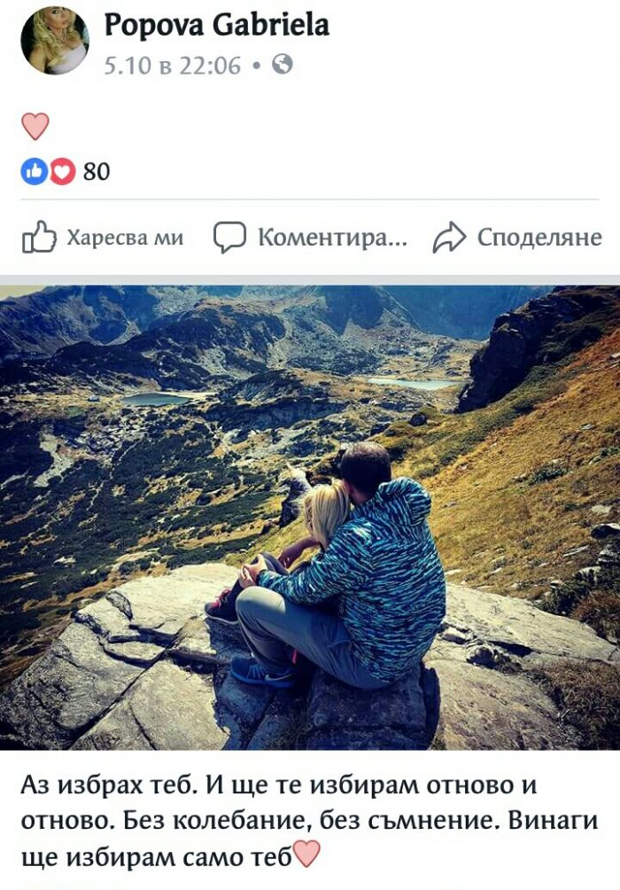 Под фотографията Габриела е написала: “Аз избрах теб. И постоянно ще предпочитам теб, още веднъж и отново”. Нещата са ясни – скоро ще има женитба.