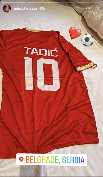 За да съобщи още по-явно, че това е нейният мъж-мечта, както самата тя го назова в една от изявленията си в Инстаграм, Татяна си обезпечи и фланелка на Тадич, с която най-вероятно ще поддържа своя любим в първия мач на Сърбия против Бразилия.
