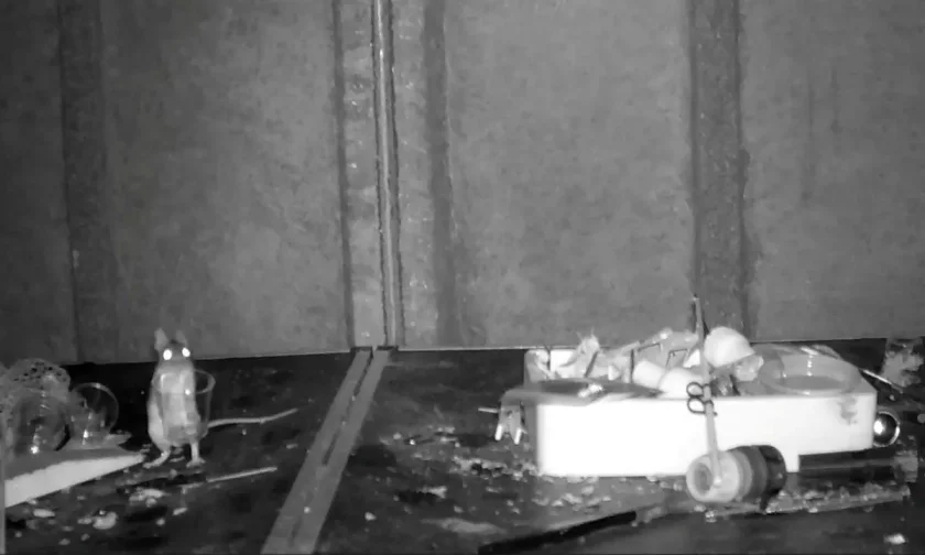 75-годишният фотограф Родни Холбрук от градчето Билт Уелс в Уелс забелязал, че предметите, които оставял разхвърляни, мистериозно се прибирали на мястото им през нощта. Затова той сложил камера за нощно наблюдаване, с цел да откри какво се случва, и с удивление разкрил, че дребна мишка подрежда всяка вечер.