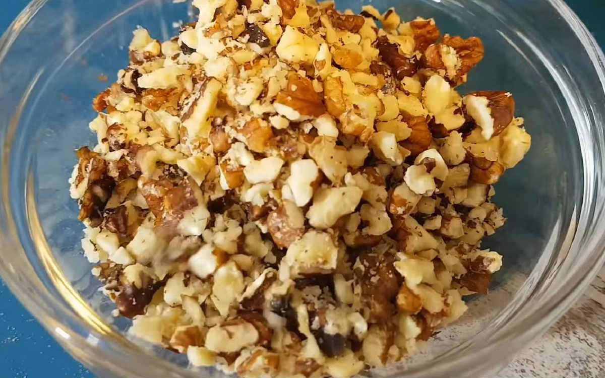 Сложете бисквитите в торбичка и ги натрошете на дребни трохи. Натрошете орехите по същия метод. Изцедете лимонен сок.