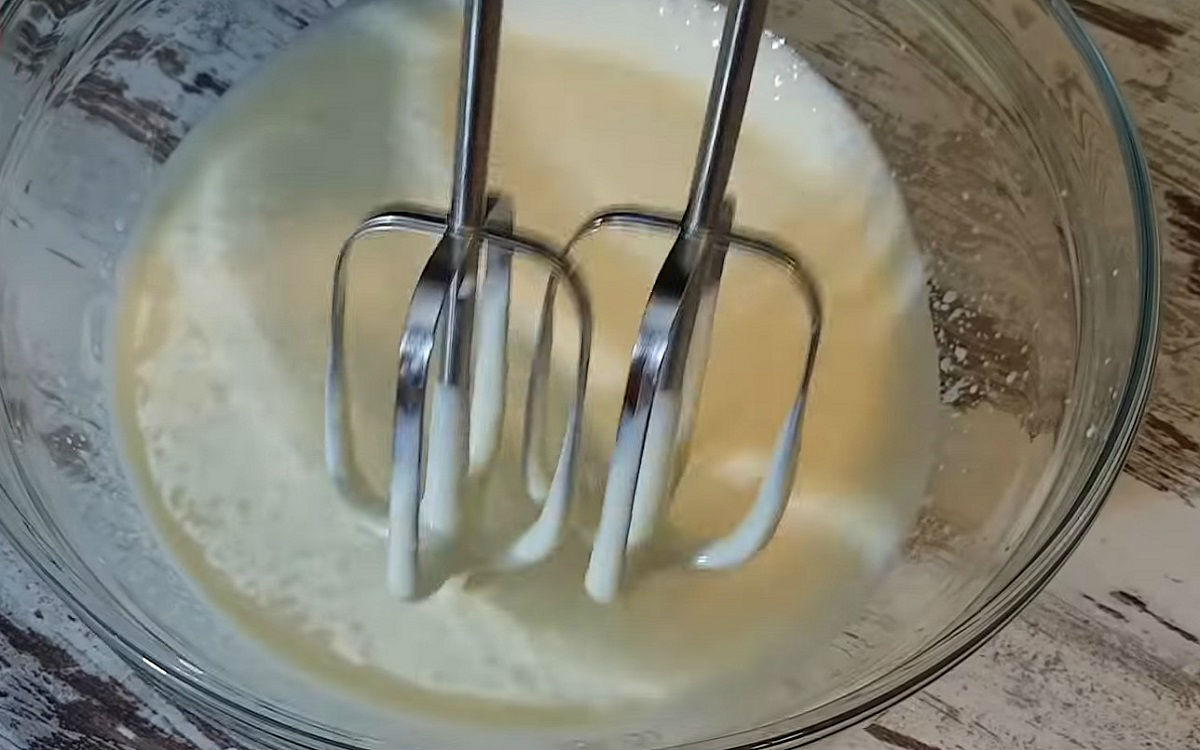 За да приготвите крема, разбийте настрана заквасена сметана 30%. Добавете кондензираното мляко и продължете да разбивате около 2 минути. Изсипете лимоновият сок и разбийте масата, до момента в който се трансформира в гъст крем.