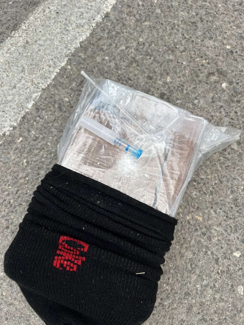 По време на щателната инспекция на втория камион митническите чиновници откриват един пакет, опакован с тиксо. При изработен полеви наркотест веществото е реагирало на кокаин, а общото арестувано количество е 1,194 кг.