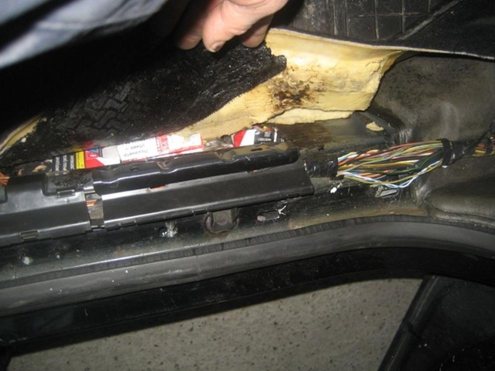 При осъществената инспекция обаче митническите чиновници откриват, че върху транспортното средство са направени голям брой операции, в резултат на които в праговете, под предните седалки и в задната ризница са построени тайници, от които са извадени 18 200 къса цигари с български бандерол.