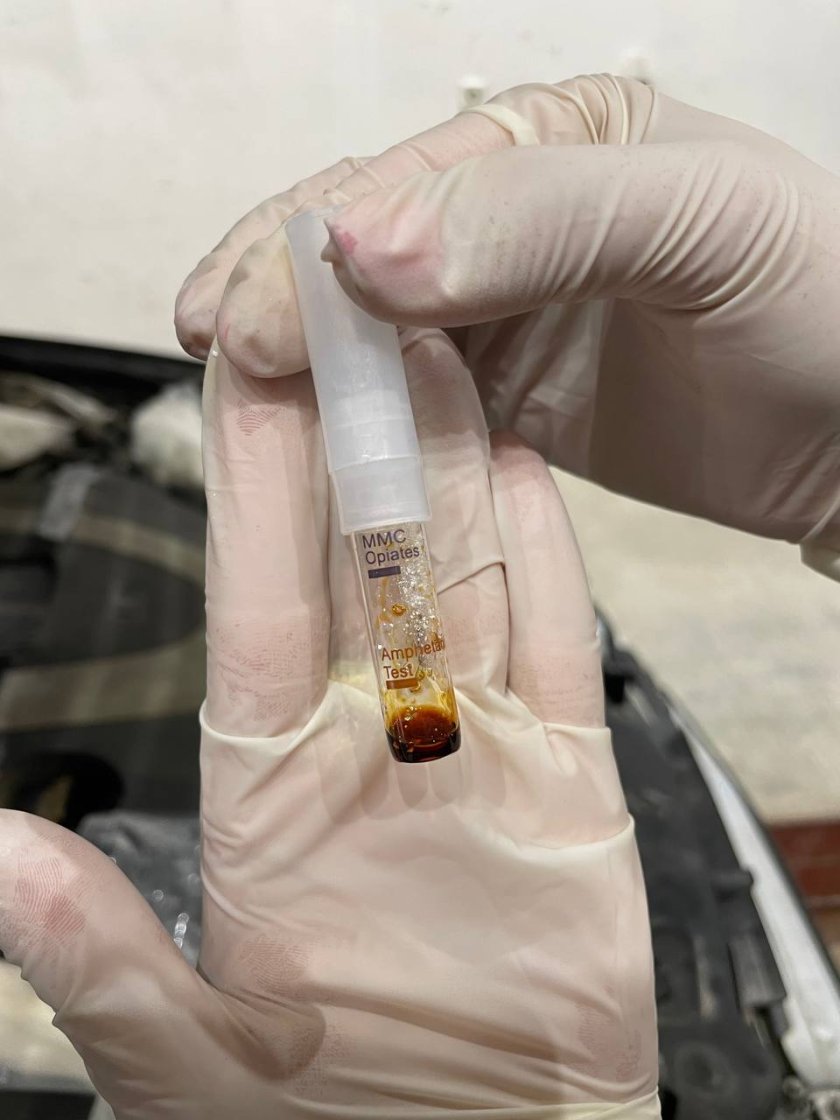 В двигателния отсек на транспортното средство били открити 18 пакета с бяло кристалообразно вещество. При осъществен полеви тест съдържимото реагирало на амфетамин. Общото му тегло е 21 кг.