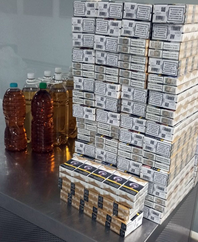 Пътникът с букви Г.К. е спрян за митническа инспекция при обработката и предаването на чекирания багаж. При осъществените контролни дейности с рентгенова инсталация митническите чиновници откриват в багажа му недекларирани 1160 кутии цигари с български акцизен бандерол, както и 10 пластмасови бутилки с съдържимост по два литра - цялостни с етилов алкохол с характерности на ракия. Недекларираните акцизни артикули са конфискувани. Срещу пасажера е формиран акт за откритото административно нарушаване и ще му бъде наложена санкция.
