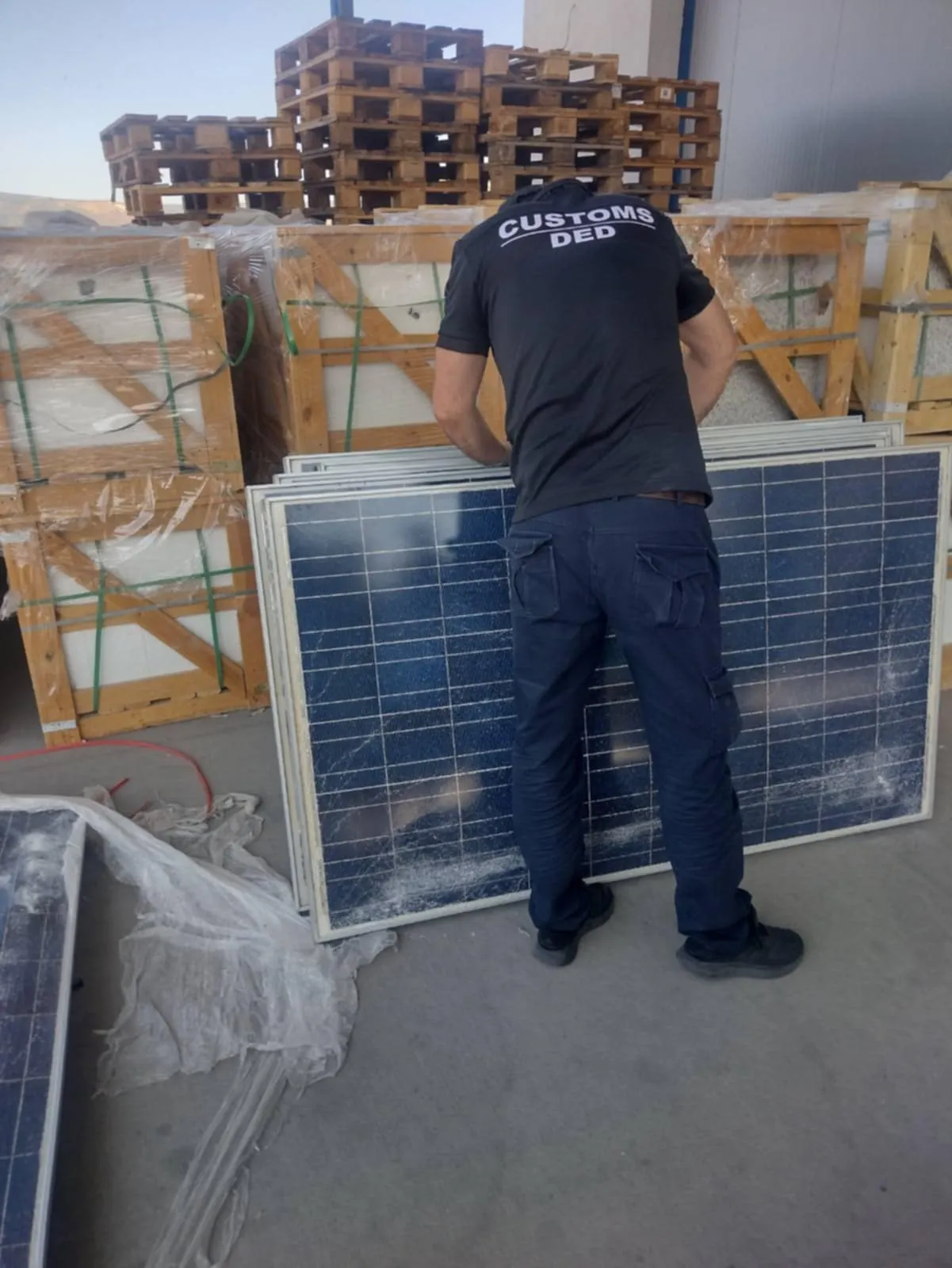 В хода на контролните дейности при една от заявените артикули - 18 използвани слънчеви панели, инспекторите откриват, че 12 от панелите са слепени по двойки и в кухините сред тях са укрити пакети със суха зелена тревиста маса. При осъществения полеви наркотест веществото в пакетите реагира на марихуана.