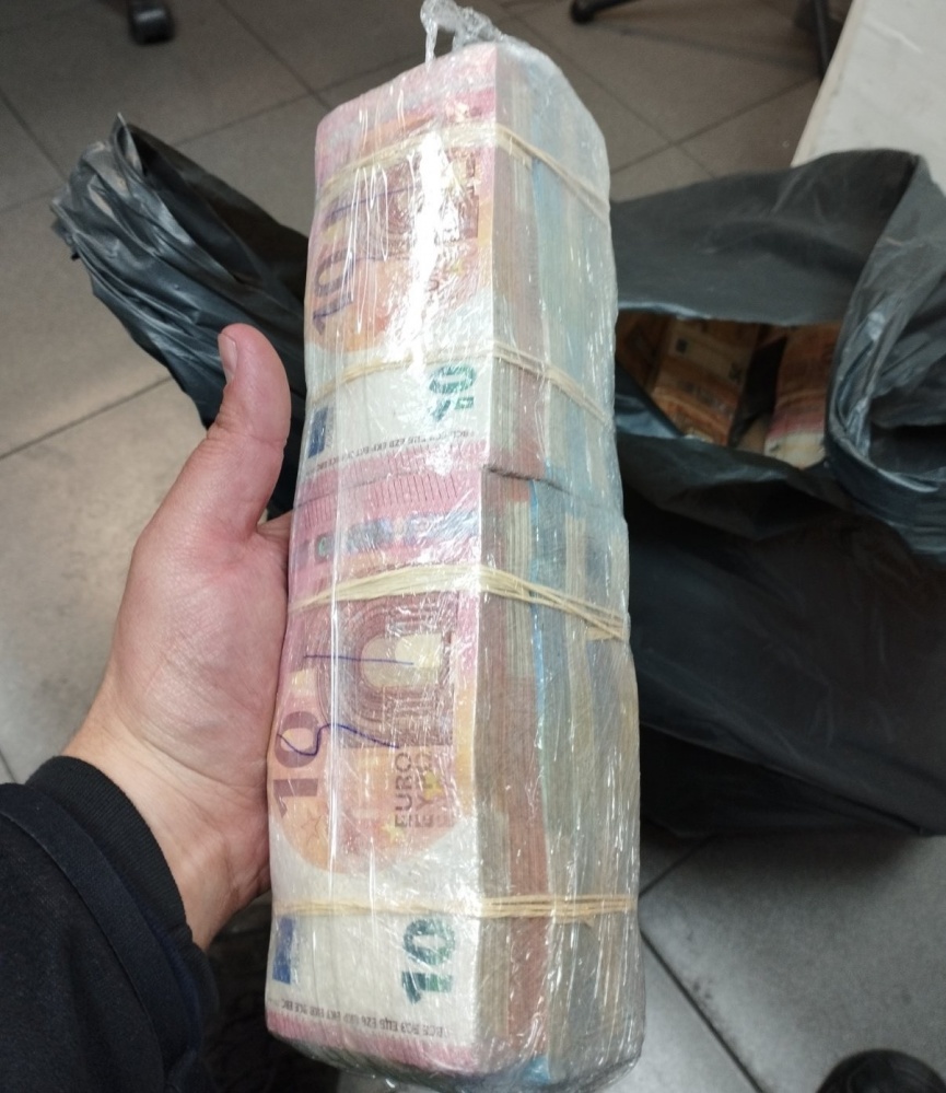 В хода на физическия надзор във фабрични кухини на хладилния елемент били открити пакети с пачки евро с друг номинал. Общото количество на откритата валута е 698 820 евро с обща левова равноценност 1 366 773 лв..