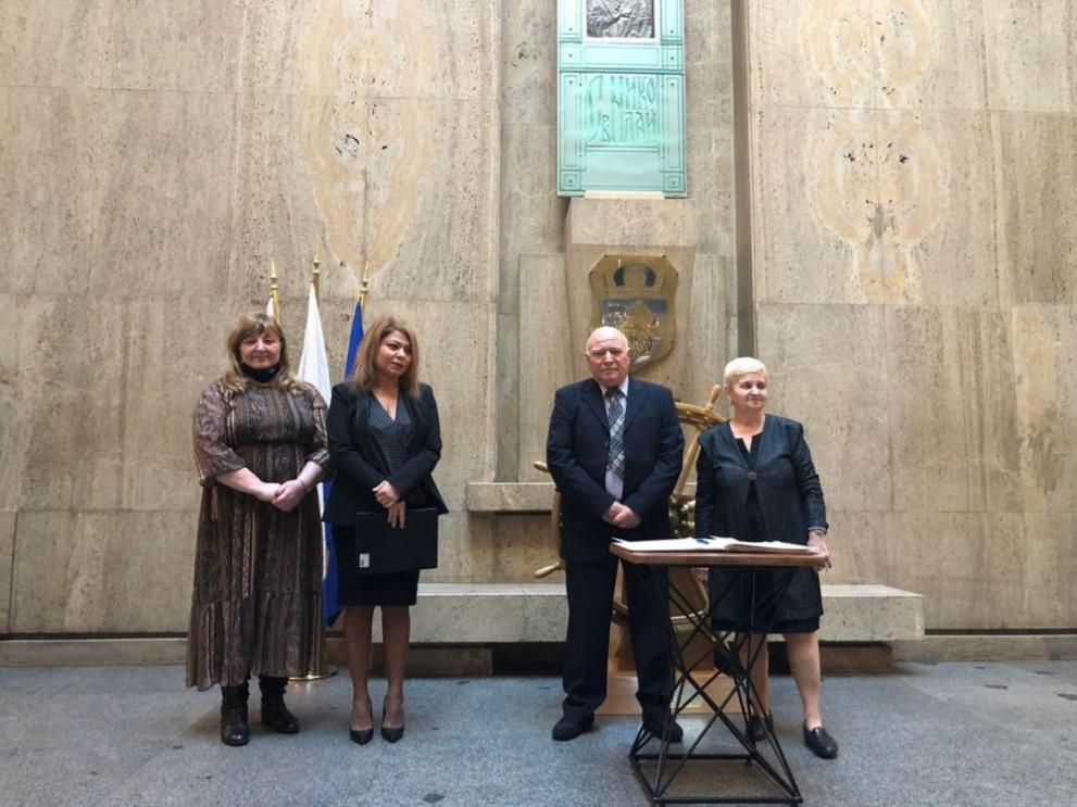 Община Бургас Водещ на церемонията бе Мариета Ханджиева, специалист по протокола в Община Бургас. Семейството получи приветствен адрес и цветя от името на кмета Димитър Николов , а формалното уверение остана вечно в архивите на Общината, в книгата за юбилейни събития.
