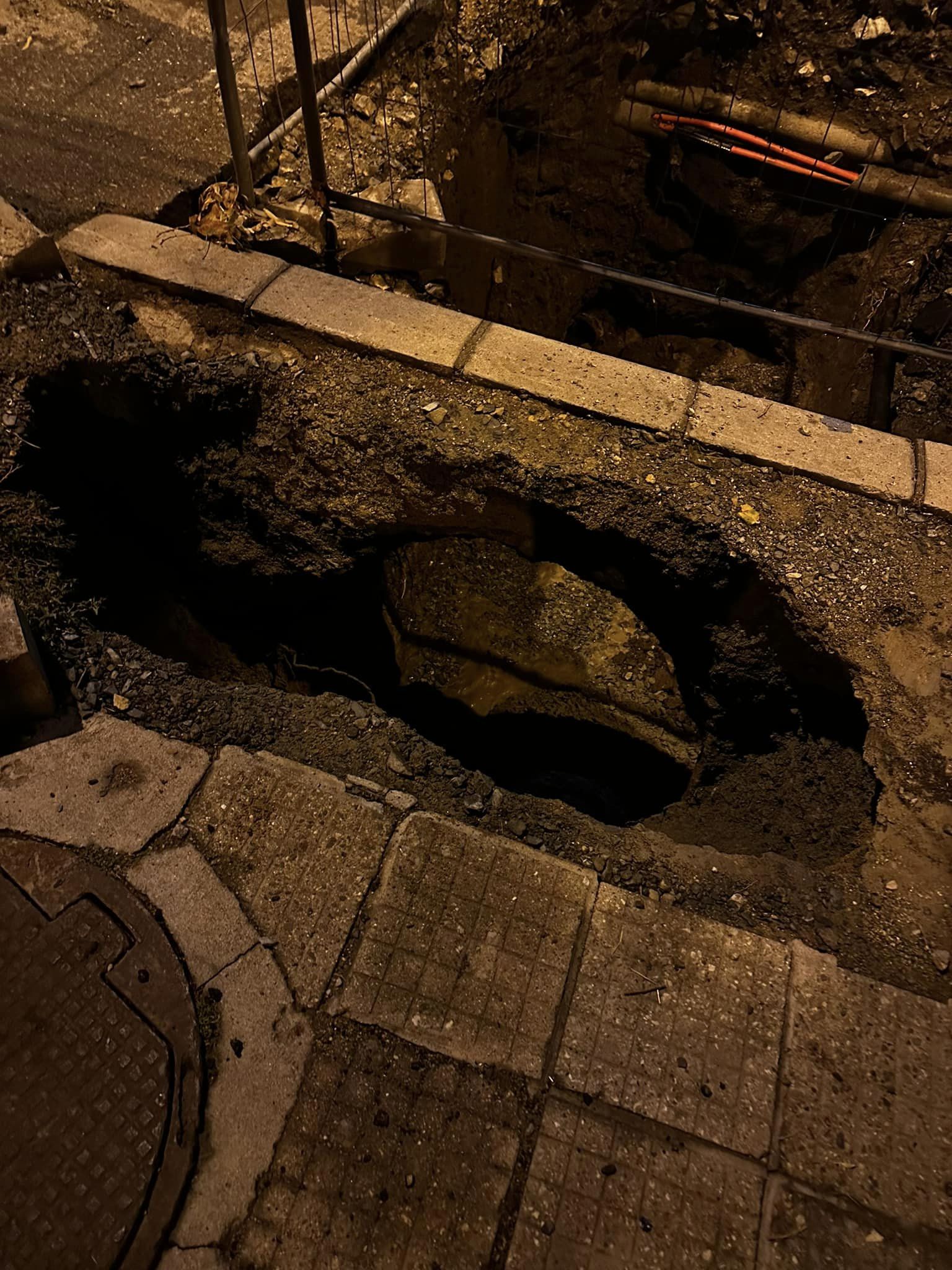 Преминавайки по тротоар край разкопан сектор, земята под краката му се свлича и мъжът пропада. За благополучие получава помощ от минувачи, които го изваждат от образувалата се дупка.