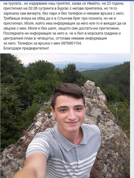 23-годишният Ивайло е трябвало през вчерашния ден на обяд да дойде в Слънчев бряг при своя позната, само че това по този начин и не се случило.