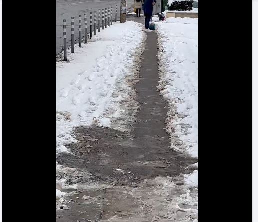 Млад мъж запретна ръкави и изрина снега от алея в София, дълга към 100 метра. Това демонстрира фрагменти в мрежата, снимани евентуално от негов другар.