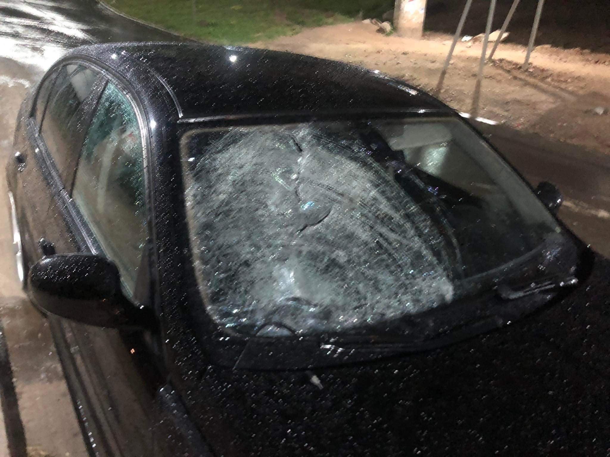 Камък прелетя покрай главата на млад шофьор и строши стъклото СНИМКИ