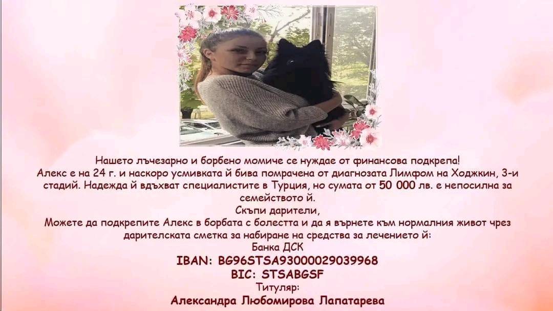 Млада жена от Пловдив се нуждае от помощ, с цел да се пребори подло заполяване. 2 -годишната Александра Лапатарева се сблъсква с първите признаци в края на 2021 година, само че тогава не получава съответна диагноза.