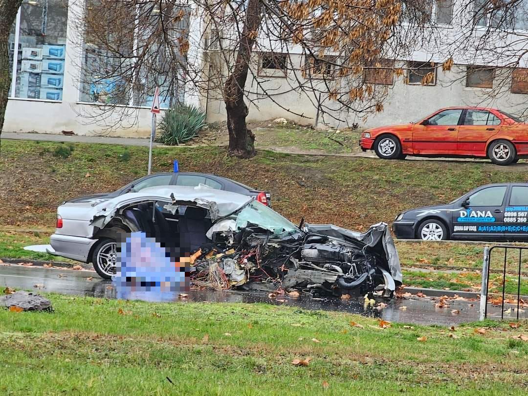 Лек автомобил " БМВ ", движещ се в посока центъра на града, е напуснал платното за придвижване и се е блъснал в дирек на уличното осветяване сред двете платна. Пътничката в колата е починала на място. Пробите на водача за алкохол и опиати са негативни, прецизираха от полицията.
