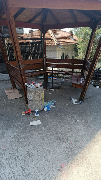 Млада майка се втрещи от положението, в което се намира площадка в Търново. На публичното място, употребено от поданици на града, се вижда съществено количество боклуци. По земята край беседка е осеяно с боклуци, а кошчето за отпадък