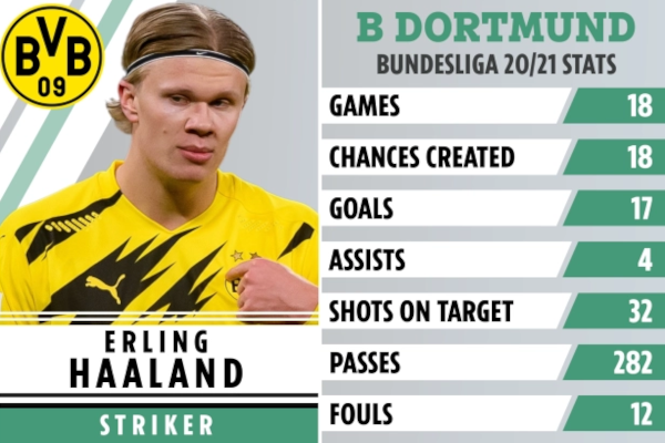 Според Bild оцененият на 110 милиона евро от Transfermarkt състезател към този момент търси трансфер в топ клуб, откакто през януари 2020 мина от Ред Бул Залцбург в Борусия (Дортмунд). За малко повече от една календарна година Холанд е отбелязал 43 гола в 45 мача във всички шампионати за " жълто-черните ". Този сезон младият суперталант има 27 гола и 8 асистенции в 27 срещи.