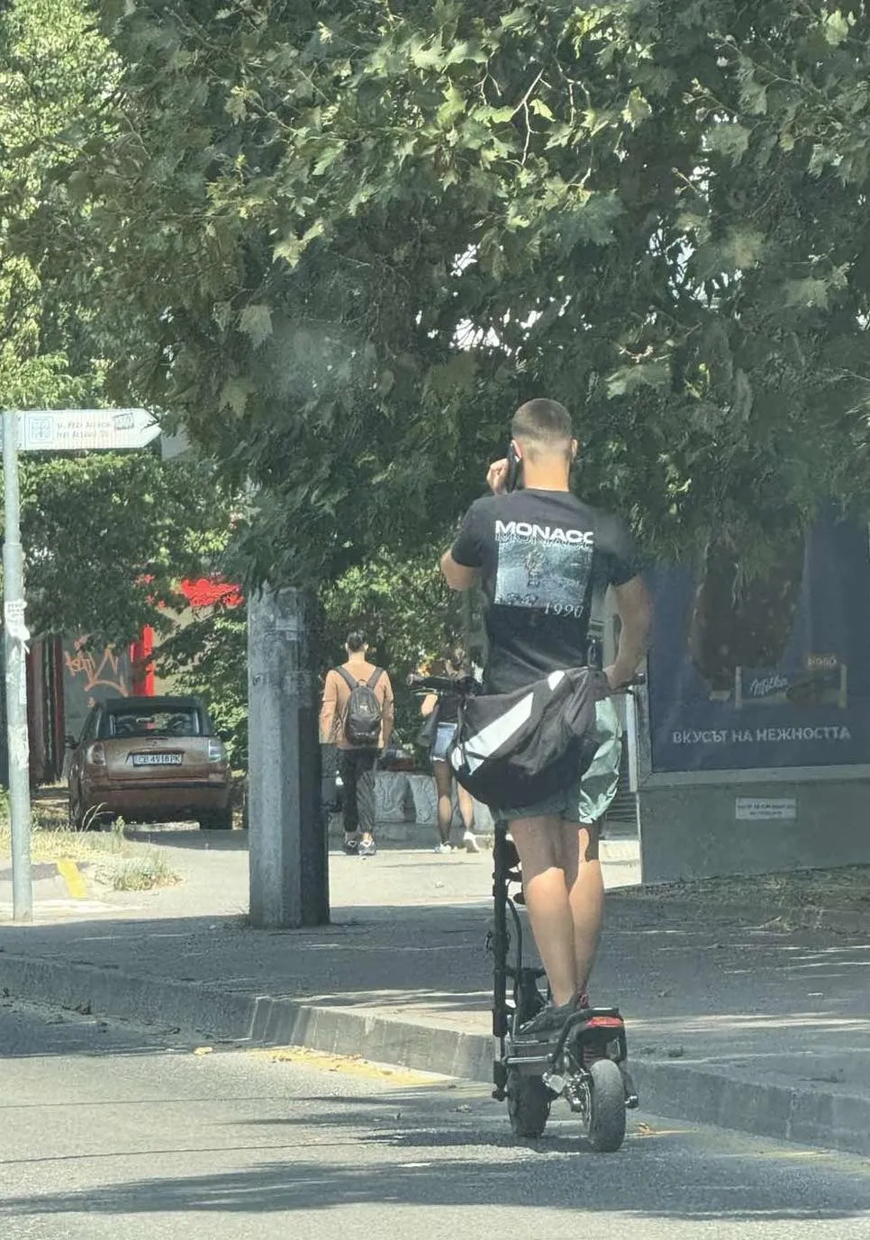 Снимката е от Варна от петък. На фрагмента се вижда по какъв начин юноша ръководи тротинетка с едната ръка, до момента в който с другата държи телефона си до ухото. Той нарушата две от новоприетите правила, записани в ЗДвП.