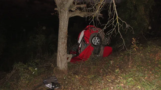 Снимка: bTV Автомобилът, ръководен от младежа, се е движил от Нисово в посока Щръклево. На десен завой, по незнайни за момента аргументи, лидерът е изгубил ръководство и е излязъл от пътя. На мястото няма следи от спирачен път. Младежът е пътувал самичък.