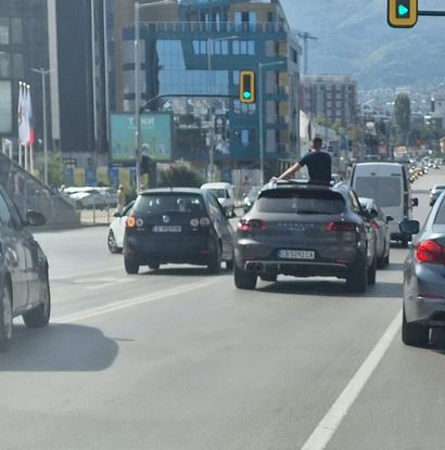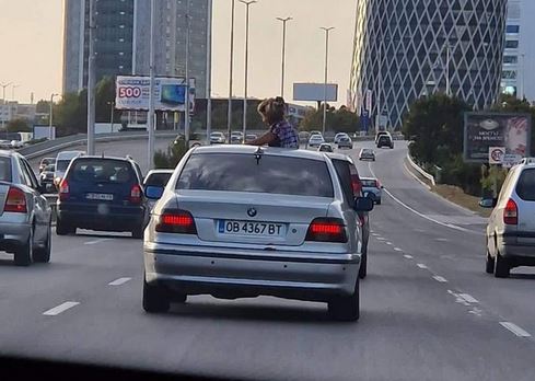 Момчето, което се е подало до кръста през тавана на джип, е снимано на станалия печално прочут бул. " Черни връх ". Припомняме, че едвам за 12 дни близо 30 000 са нарушаванията за скорост, които бяха открити по трасето от двете електронни табла, инсталирани след злополуката, при която починаха две девойки.
