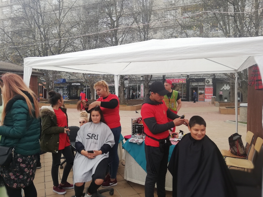 На щанда на Професионалната гимназия по превоз, обслужване и лека индустрия бъдещи коафьори от паралелката по фризьорство демонстрираха уменията си.