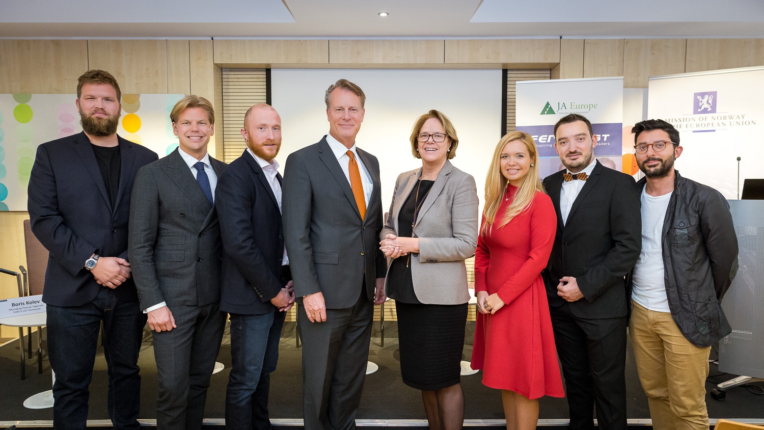 Високопоставени посетители от Европейския парламент, дипломати и висши мениджъри от сферата на нововъведенията почетоха награждаването на младите водачи в Норвежката резиденция в Брюксел.
