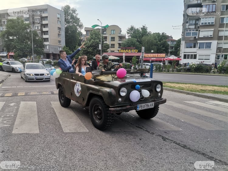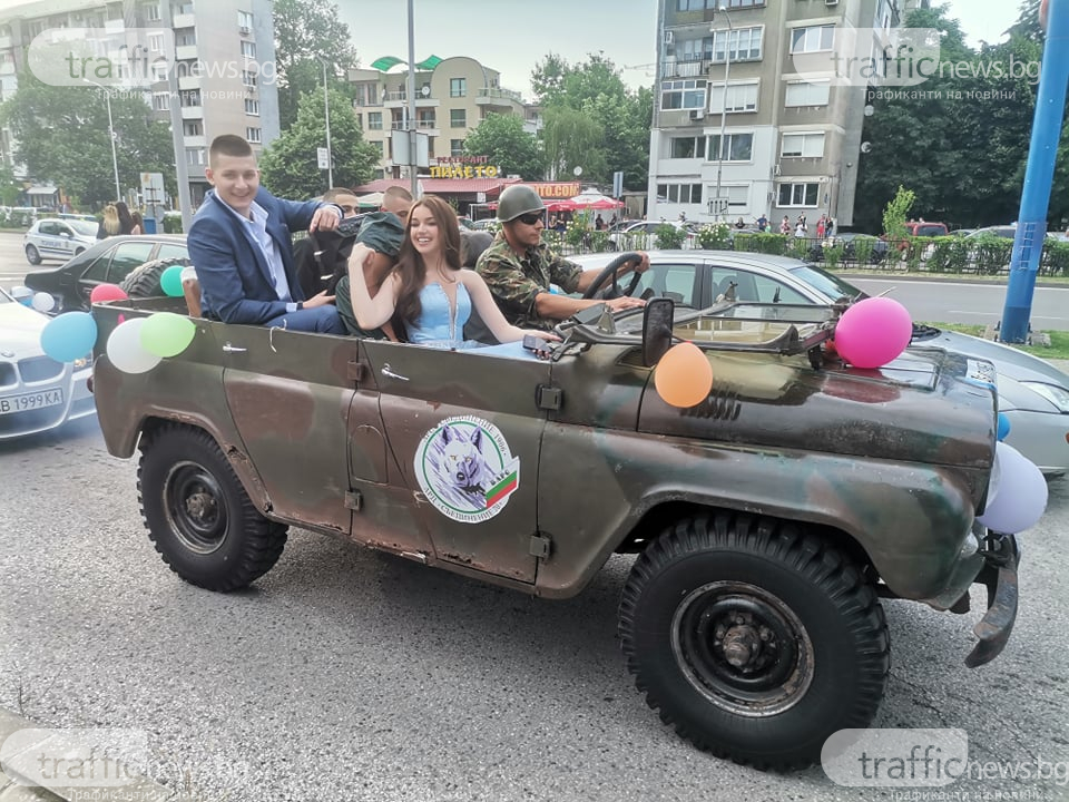 Военни камиони и автомобил с розови балони изпратиха абитуриентите пред Санкт Петербург