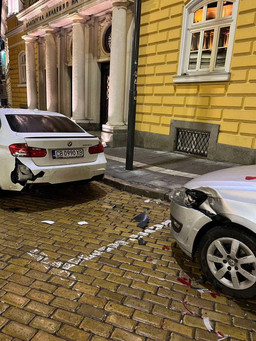 Този кифльок с БМВ помете коли на жълтите павета и избяга (Снимки)